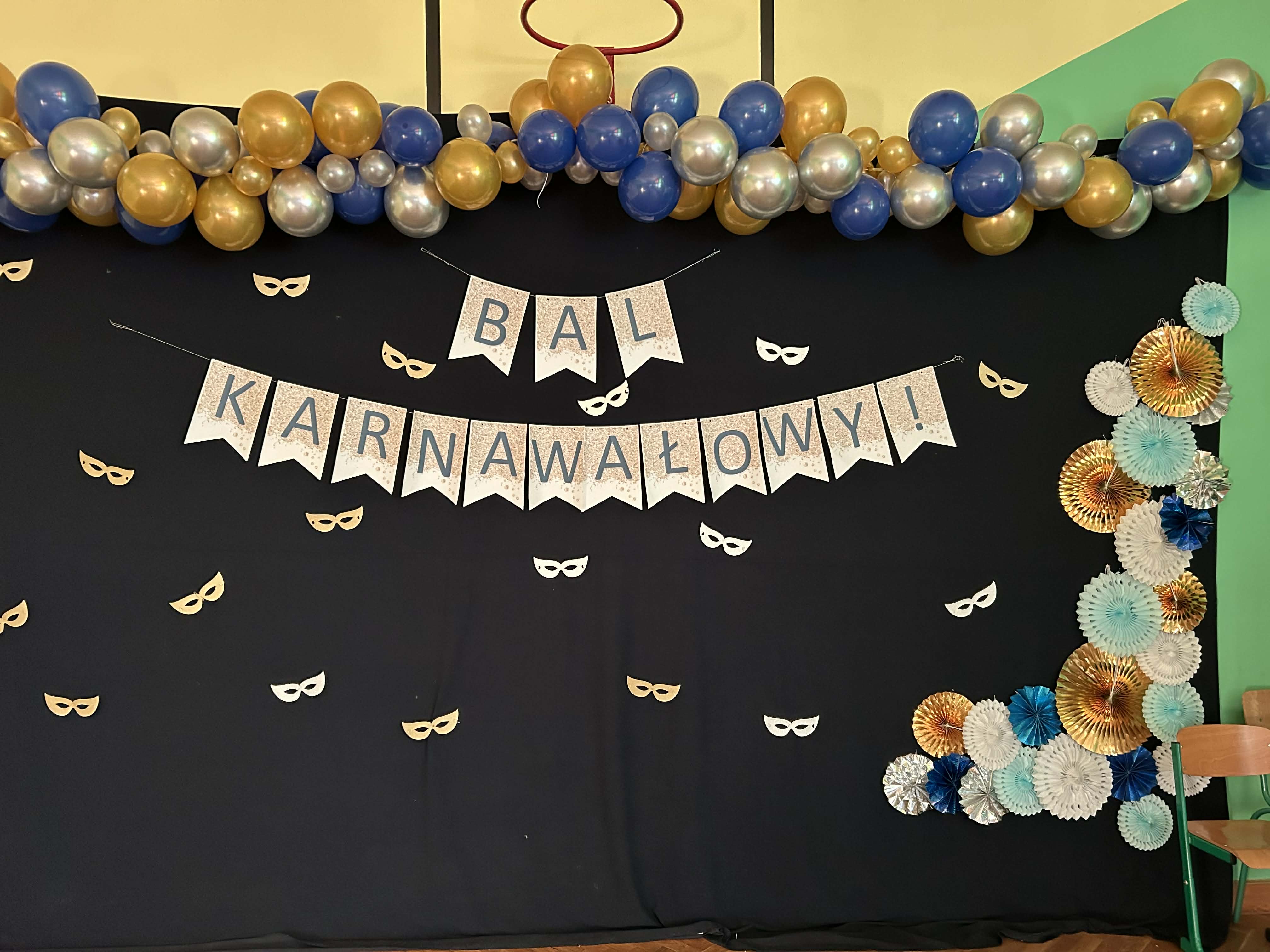 Sala gimnastyczna udekorowana balonami, światełkami, gwiazdami wyglądała inaczej niż na co dzień. W tak pięknie udekorowanej auli, przy dźwiękach muzyki rozrywkowej wszyscy uczestniczyli we wspólnej zabawie podczas, której nie zabrakło konkursów, gier i niespodzianek.