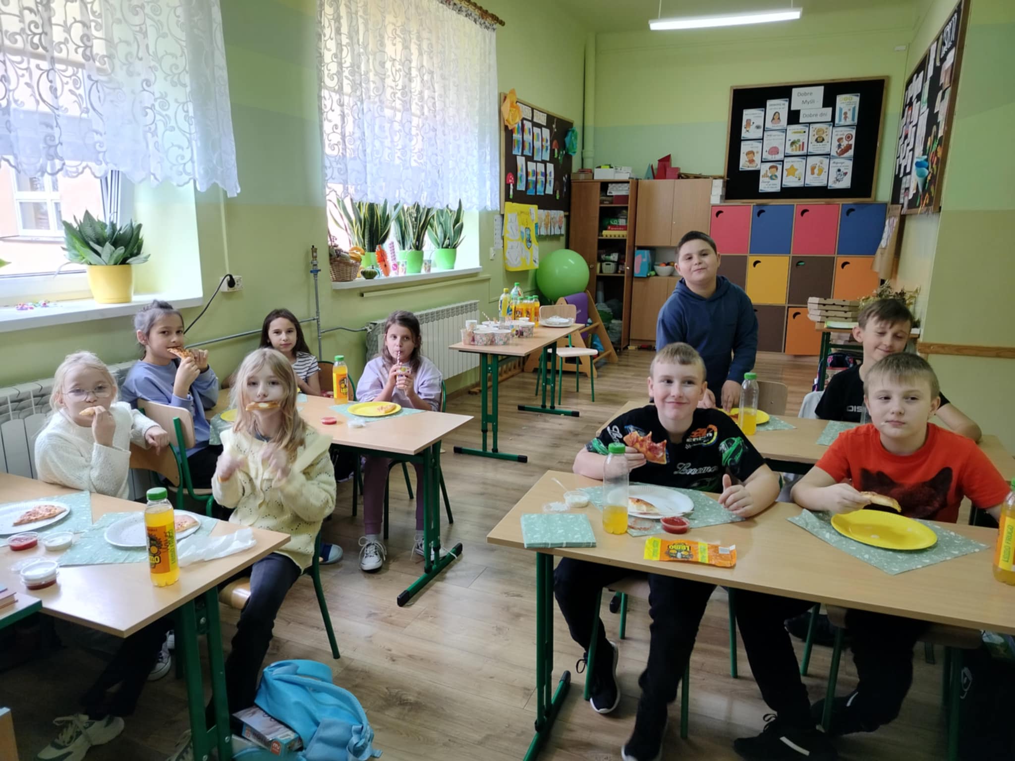 Uczniowie klasy 1 w dniu 05.11.2025r. zrealizowali swój bon w postaci Dnia Pizzy, który wygrali podczas obchodów tegorocznego Dnia Dyni.