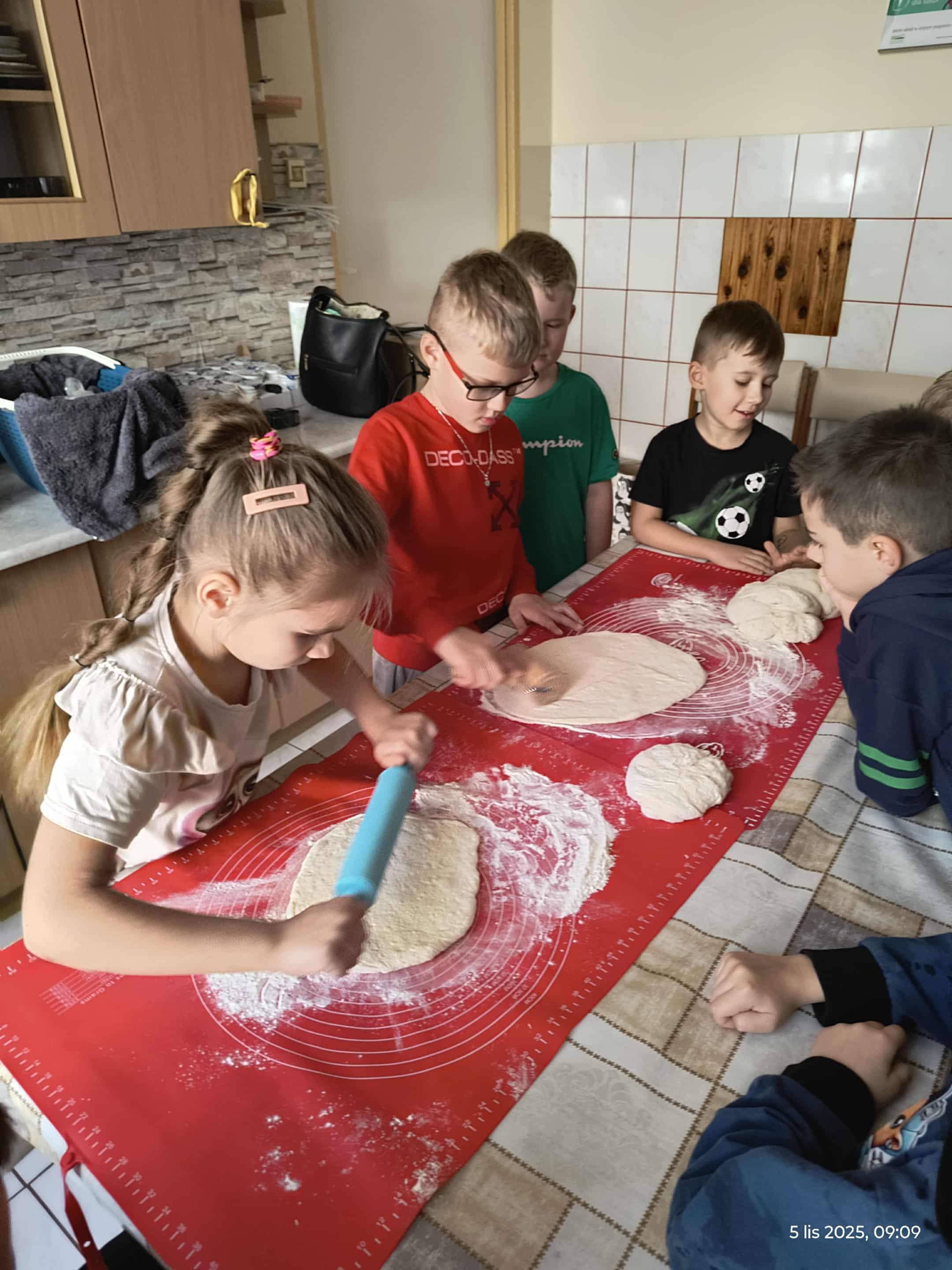 Zgodnie ze wcześniejszymi ustaleniami sami postanowili przygotować pizzę. Dzięki pomocy mamy ucznia, Pani Justyny Świstak, która zrobiła i dostarczyła ciasto na pizzę, wszystkie pozostałe etapy przygotowania dania pierwszoklasiści wykonali bardzo sprawnie i samodzielnie.