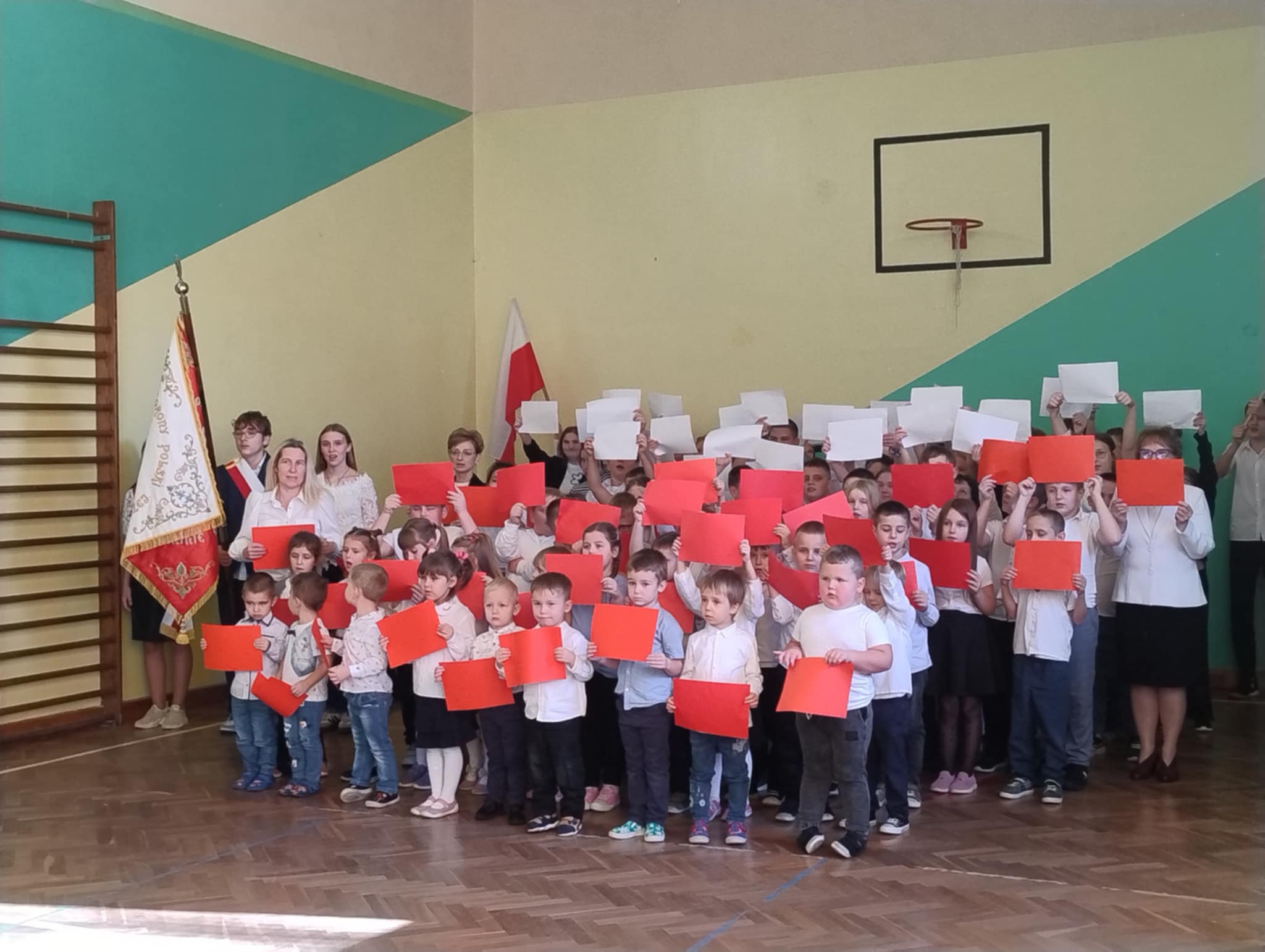 W tym uroczystym apelu, który rozpoczął się od odśpiewania hymnu narodowego, udział wzięli pani dyrektor, nauczyciele, uczniowie, społeczność szkolna, rodzice oraz zaproszeni goście. Spotkanie było doskonałą okazją do kultywowania polskiej tradycji, poszanowania symboli narodowych oraz integracji społeczności szkolnej. Wszyscy z zainteresowaniem obejrzeli występ swoich kolegów i koleżanek, a całość nagrodzili zasłużonymi, gromkimi brawami.
