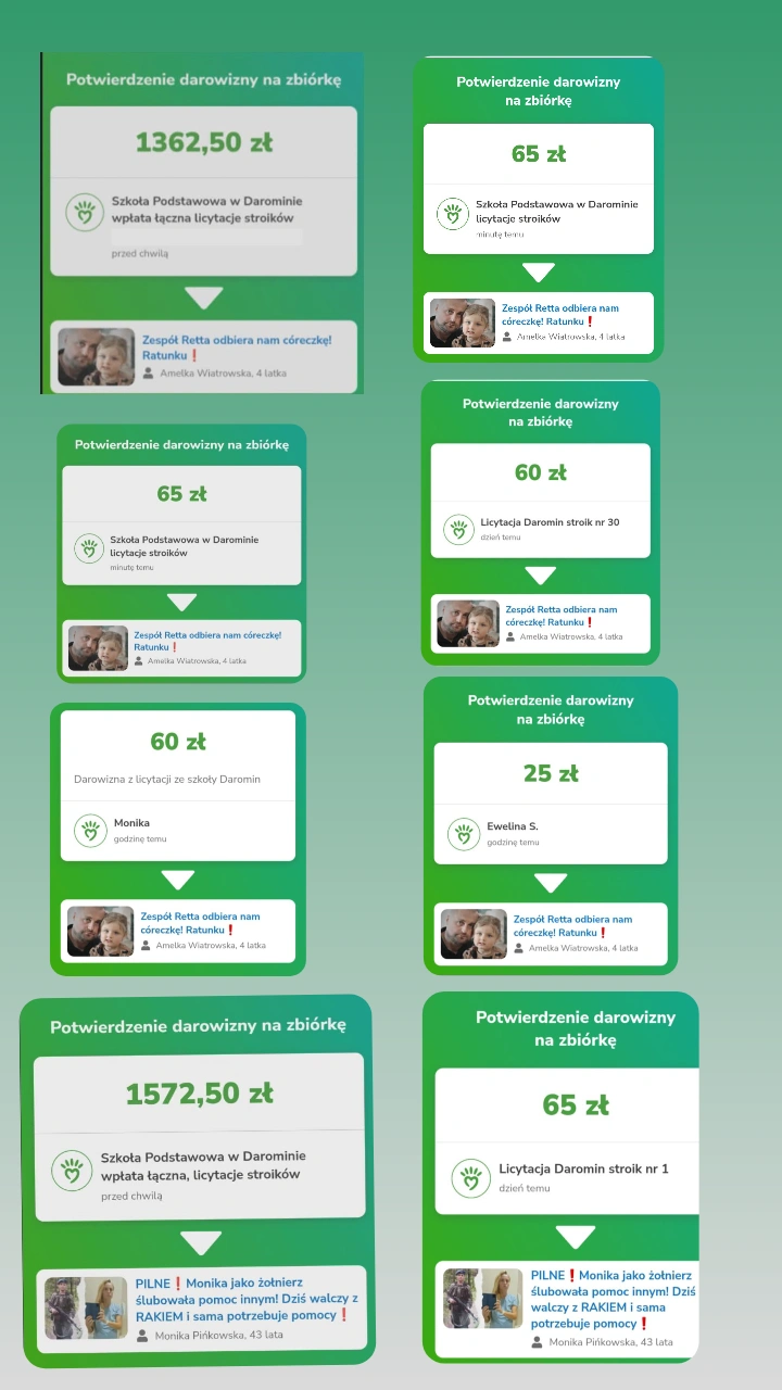 Prace wykonane na konkurs bożonarodzeniowy zorganizowany w grudniu bieżącego roku w naszej szkole trafiły na licytację charytatywną, a dochód z licytacji został przekazany na konta zbiorek Amelii Wiatrowskiej z Opatowa oraz Moniki Pińkowskiej z Ożarowa.