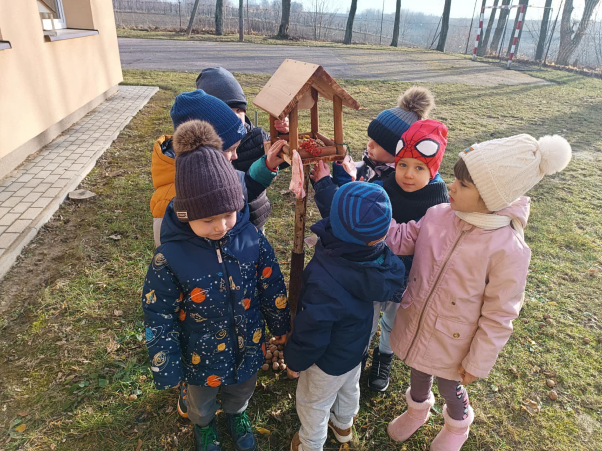 Podczas zajęć rozmawialiśmy o tym, dlaczego zimą tak ważne jest dokarmianie zwierząt. Dzieci dowiedziały się, że wiele ptaków, takich jak sikorki, wróble czy kosy -zimą mają utrudniony dostęp do pożywienia, dlatego pomagamy im wsypując do karmników mieszanki ziaren.