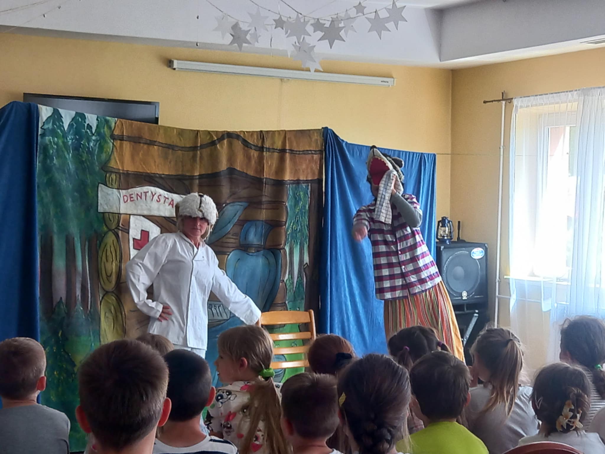 6 czerwca 2025 r. wychowankowie z grupy 5-6 latków oraz uczniowie z klas I-III wybrali się do Gminnej Biblioteki Publicznej w Wilczycach, gdzie mieli okazję obejrzeć spektakl pt. „Wilk i zając” w wykonaniu aktorów Teatru KRAK-ART.